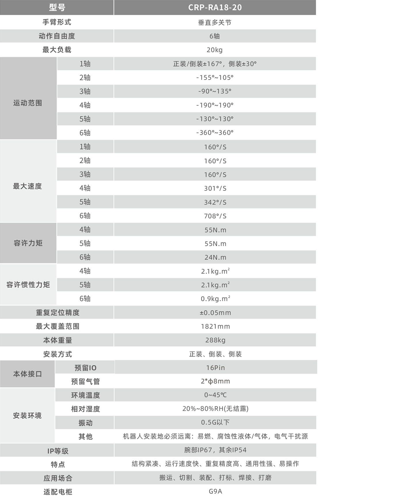 机器人整体结构高度紧凑、轻量化,更加轻巧适用,尤其腕部更加小巧,满足更多的场景。