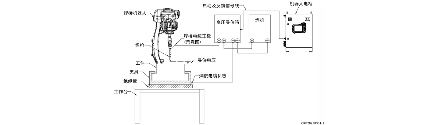 • 本设备配合焊接机器人的焊丝寻位功能,反馈焊丝在碰到工件的信号,机器人自动计算位置的偏差,修正位置点,使机器人寻到实际的焊接点。
